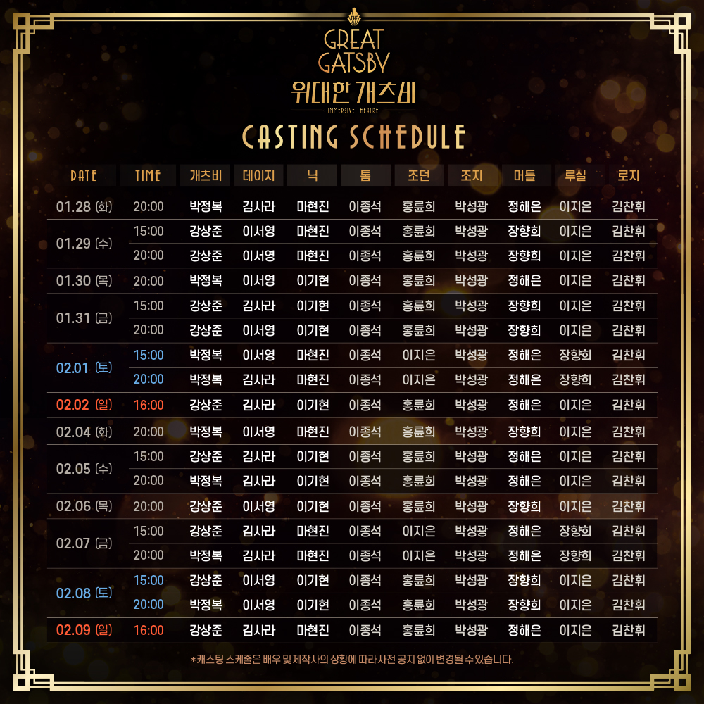 2차 티켓오픈 캐스팅 스케줄 2차티켓 오픈회차 : 1.14 ~ 2.9 예매처 : 인터파크