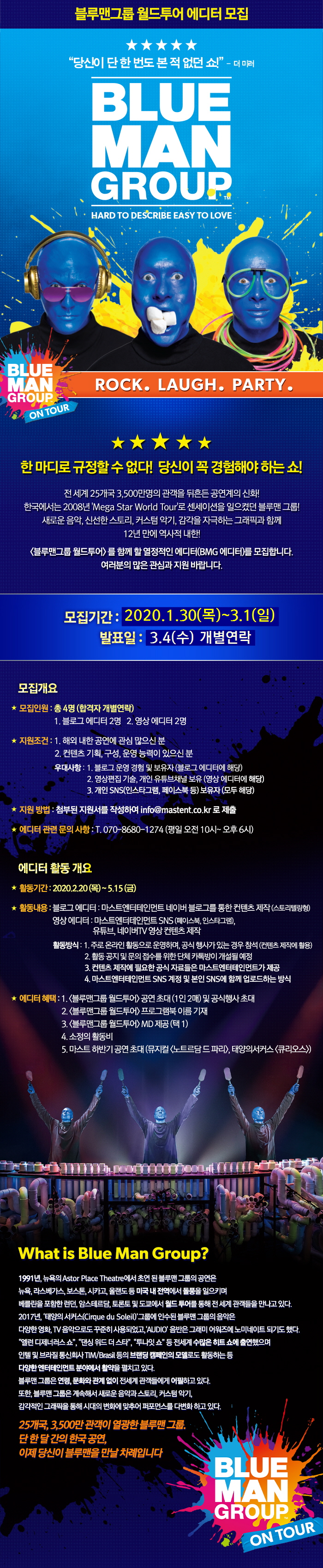 [알림] 블루맨그룹 월드투어 에디터 모집 공고 (연장)